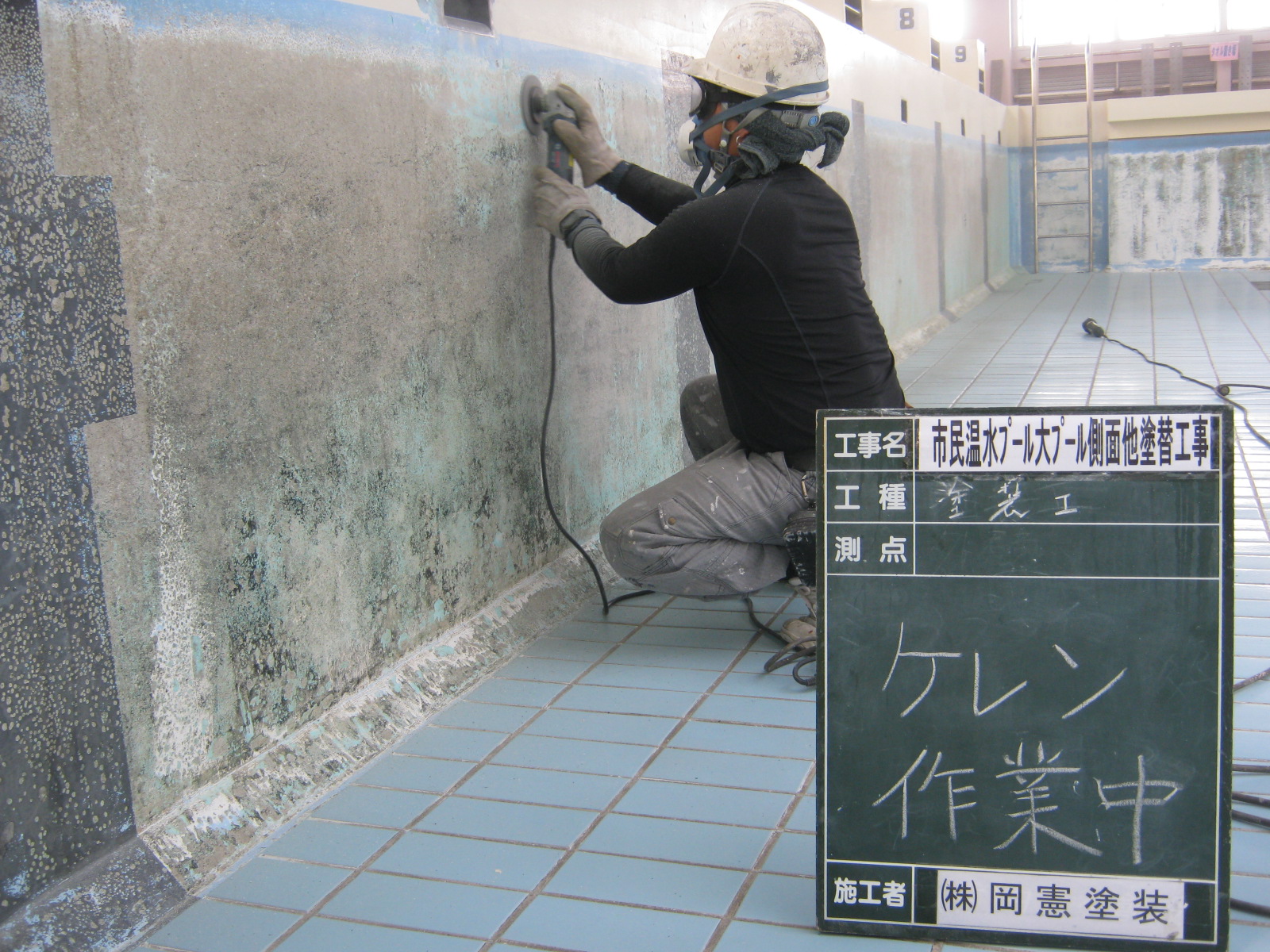 プール側面塗装前